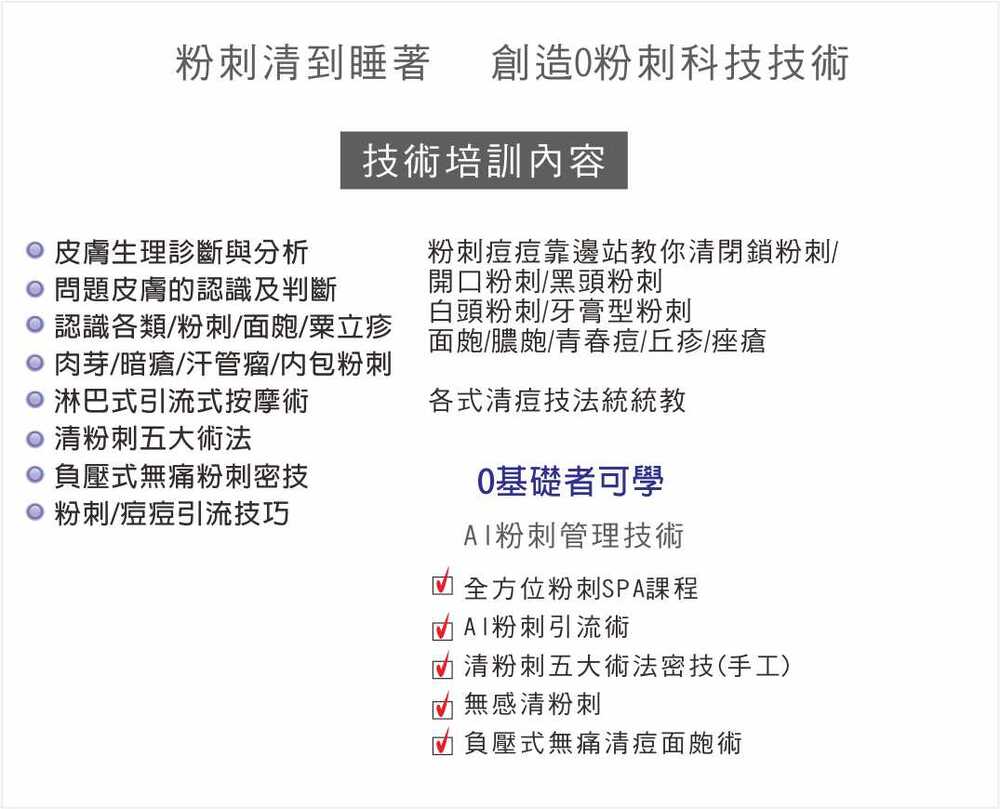◆管理創業班 ◆ 美容護膚教學 ◆無痛清粉刺教學課程